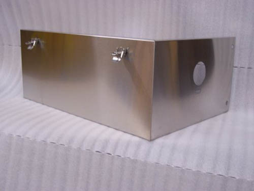 Constructed from 24 gauge 304 stainless steel, the tank wrap measured 25.6 inches long, 17.6 inches wide, and 10.1 inches high. The part also weighed 2.32 pounds. In order to ensure the tank wrap met precise client requirements, we performed a variety of product inspections. Testing included checking the first unit in flat, examining the first bent, and inspecting the latch after installation.